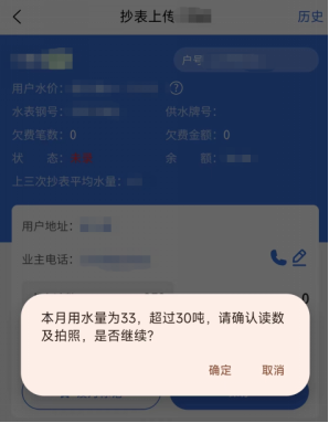 年初,公司完成智慧水務(wù)平臺營收系統(tǒng)升級,新增了手機(jī)抄表、數(shù)電發(fā)票開具、掃碼評價等功能,其中“手機(jī)抄表”實現(xiàn)了用水量異常預(yù)警,在實際運(yùn)用中發(fā)揮了重要作用。在宜城窯灣八隊武先生家的例行抄表過程中,公司抄表員范云飛、李一可通過“手機(jī)抄表”系統(tǒng)錄入數(shù)據(jù)時,“抄表上傳”頁面自動彈出“本次用水量超過30噸”的提醒。經(jīng)與用戶過往平均用水量對比后,抄表員確認(rèn)該用戶本季度用水量遠(yuǎn)超日常,并在進(jìn)一步觀察中發(fā)現(xiàn)水表持續(xù)緩慢轉(zhuǎn)動,判斷用戶表后可能存在漏水點。